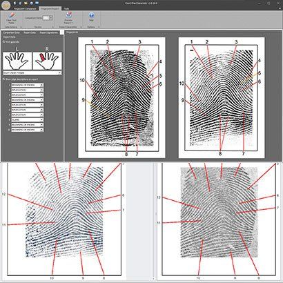 Court chart generation has never been easier – no more arduous work using MS Word, MS PowerPoint or paper, ruler and a red pen. This automated Court Chart Generator produces professional fingerprint court exhibits. It produces a complete fingerprint Court Chart exhibit based on the standards and templates set by the client.