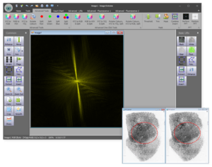 This Software incorporates many functions, such as gamma, contrast and brightness corrections, removal of shades, advanced colour processing, Fast Fourier transform (FFT), geometric transformation, linear and non-linear filters and many more. No image manipulation tools are available (e.g. advanced cloning functions, eraser, and paint brush).